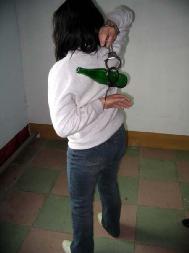 Tay bà Mục bị còng ra sau lưng, với một tay vòng qua vai. Bọn cảnh sát để một chai bia dưới cái còng, nó làm giảm lưu thông máu qua cổ tay bà, và làm cho tay bà tím đen và rất đau. Cổ tay bà Mục vẫn còn tê từ khi bị tra tấn.