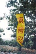 Biểu ngữ Chân Thiện Nhẫn, Pháp Luân Đại Pháp Hảo tại vùng núi Nghi Mông