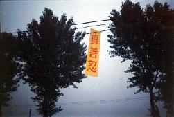 [MINH HUỆ 23-3-2005] Kể từ 20-7-1999 đến nay, Giang Trạch Dân cùng đám tay chân vẫn duy trì và leo thang cuộc đàn áp nhắm vào các học viên Pháp Luân Công. Nhưng trại tù, giam cầm, tẩy não, tra tấn, vẫn không hề lay chuyển đức tin vào Pháp của các học viên. Mặc dù đã có rất nhiều học viên phải lâm vào cảnh vô gia cư, họ vẫn tiếp tục học Pháp tinh tấn và nỗ lực nói rõ sự thật cuộc đàn áp cho người dân hiểu. Dưới đây là một số tấm hình đã được chụp từ hồi tháng 3-2002 về những biểu ngữ, bích chương giảng rõ sự thật.