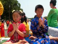 Biểu diễn các bài công pháp và các đệ tử tí hon đang phát chính niệm