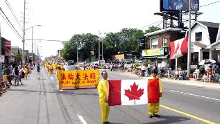 [MINH HUỆ 3-7-2005] Ngày 1 tháng 7 năm 2005, đánh dấu 138 năm ngày thành lập Canada. Toàn Canada cử hành trọng thể ngày Quốc khánh, và ngay tại Toronto, Hội Pháp Luân Công tại Toronro cũng được mời tham gia vào hai cuộc diễn hành trọng thể tại East York và Scarborough. Đoàn diễn hành của các đệ tử Pháp Luân Công đã được mọi người tán thưởng nhiệt liệt.