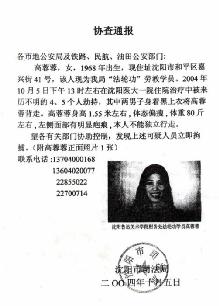 Tờ “thông tri tra cứu” do văn phòng luật pháp thành phố Thẩm Dương phát hành đã phơi bày các tội ác phá huỷ nhan sắc và các tội khác đã phạm phải trong trại lao động.