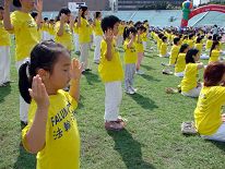 Các bài công pháp được hơn 1, 400 đệ tử Pháp Luân Công biểu diễn vào buổi bế mạc Đại hội. Đây là nhóm biểu diễn đông đảo nhất trong Đại hội.