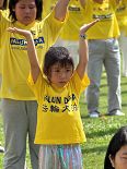 Là một ngày nắng ấm, đẹp trời, với chút gió. Mở đầu của Đại hội, đội “Tân Đường Nhân Kỳ Cổ Đội” biểu diễn. Sự biểu diễn hùng tráng được người xem cảm kích. Các đệ tử biểu diễn công pháp được sắp xếp vào đoạn gần cuối. Các đệ tử đợi chờ kiên nhẫn dưới ánh nắng chan hoà. Hơn 1, 400 đệ tử tham gia vào biểu diễn công pháp. Hàng đầu là các đệ tử với bảng khẩu hiệu màu xanh, rất lớn “Pháp Luân Đại Pháp”. Sự biểu diễn rất ngoạn mục, thanh lịch, và sự trật tự, nghiêm trang của họ với giòng nhạc thanh thót thu hút được tất cả mọi người trong không khí an hoà, thanh lặng.