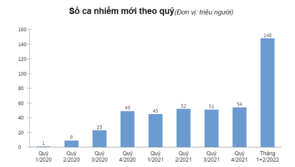 - Sang năm 2022, tháng 1 ghi nhận con số kỷ lục 92 triệu ca nhiễm mới, tháng 2 là 56 triệu ca.