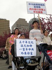 Rất nhiều người phát biểu vào ngày đó, như cô Wu, người mới đến Hoa kỳ từ Trung Quốc, Ông Guan từ Indonesia, và Lan Shu, người bình luận nổi tiếng tại Đài tiếng nói Hy vọng. Cô Wu kể lại kinh nghiệm chính cô ta bị bắt giam bất hợp pháp và tra tấn bởi ĐCSTQ vì giảng rõ sự thật về Pháp Luân Công tại Trung Quốc. Ông Guan bày tỏ lòng hy vọng nhân dân Trung Quốc sẽ phục sinh lại nền văn hoá cổ truyền và có một tương lai sáng lạng.