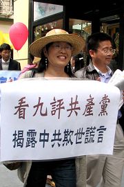 Cô ta nói rằng rất nhiều người bị ĐCSTQ lừa mị. Nhân dân Trung Quốc sống trong một hoàn cảnh mà không thể bị khống chế bởi ĐCSTQ. Sau khi đọc Chín Bài Bình luận về Đảng Cộng sản Trung Quốc, cô ta nói rằng cô ta hiểu rất nhiều về những thủ đoạn của ĐCSTQ.