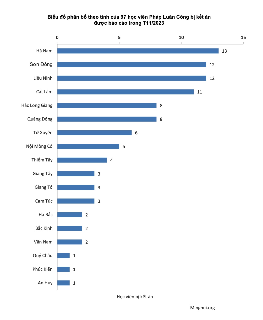 [MINH HUỆ 08-12-2023] Tháng 11 năm 2023 ghi nhận tổng cộng 97 học viên Pháp Luân Công bị kết án tù vì kiên định đức tin.