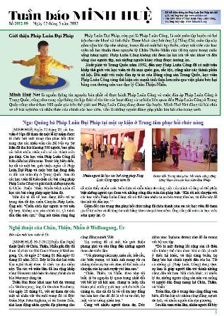 [MINH HUỆ 14-03-2012]Tuần báo Minh Huệ tổng hợp tin tức hàng tuần về cuộc đàn áp ở Trung Quốc và các sự kiện của học viên Pháp Luân Công trên khắp thế giới, với dạng thức là bản in màu định dạng PDF, gồm 4 trang. Bản PDF này định dạng khổ A4 tiện dụng cho việc in ấn phổ thông.