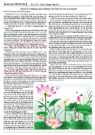 Nội dung của Tuần báo Minh Huệ bao gồm các thông tin chung về Pháp Luân Đại Pháp, tin tức được chọn lọc từ các chuyên mục trong tuần.