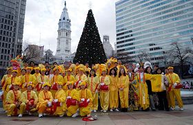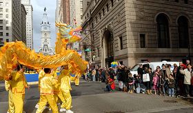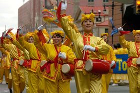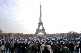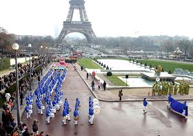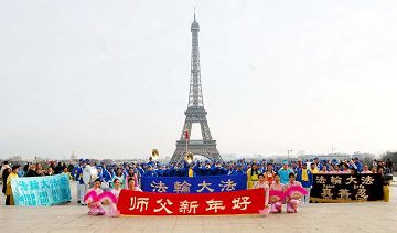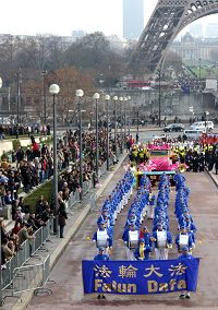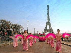 Paris, Pháp: Ngày 1-1-2008, các đệ tử Đại Pháp tổ chức diễu hành và các chương trình nghệ thuật, tham gia cùng hội xuân 2008: