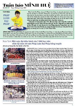[MINH HUỆ 28-05-2012]Tuần báo Minh Huệ tổng hợp tin tức hàng tuần về cuộc đàn áp ở Trung Quốc và các sự kiện của học viên Pháp Luân Công trên khắp thế giới, với dạng thức là bản in màu định dạng PDF, gồm 4 trang. Bản PDF này định dạng khổ A4 tiện dụng cho việc in ấn phổ thông.