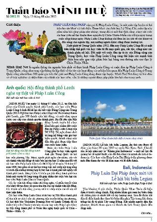 [MINH HUỆ 14-08-2012]Tuần báo Minh Huệ tổng hợp tin tức hàng tuần về cuộc đàn áp ở Trung Quốc và các sự kiện của học viên Pháp Luân Công trên khắp thế giới, với dạng thức là bản in màu định dạng PDF, gồm 4 trang. Bản PDF này định dạng khổ A4 tiện dụng cho việc in ấn phổ thông.