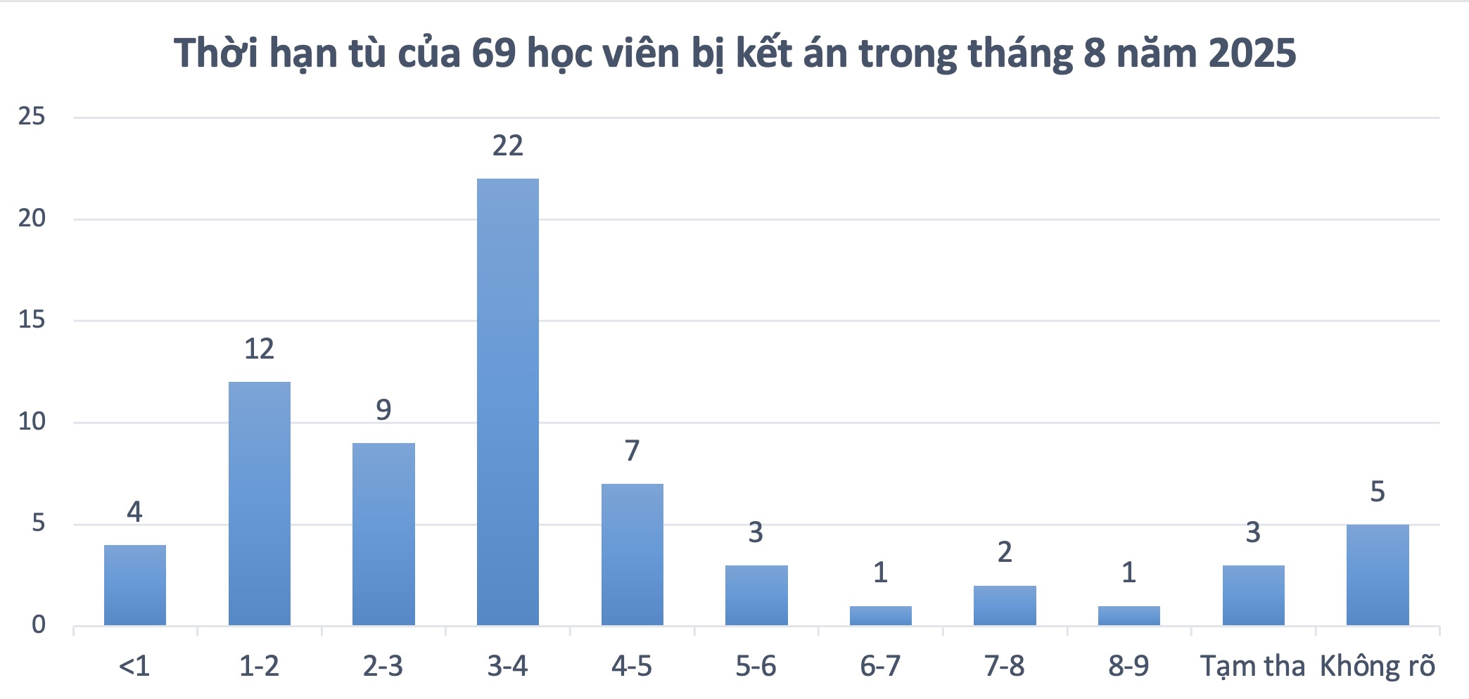 Trong một báo cáo trước đó, một diễn biến mới đáng lo ngại đã được ghi nhận khi các học viên cao tuổi bị bắt giam trở lại để thi hành bản án mà trước đây được hoãn thi hành. Nhiều trường hợp tương tự đã được báo cáo vào tháng 8 năm 2025.