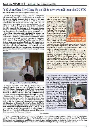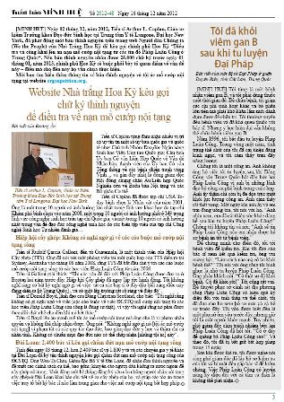 [MINH HUỆ 17-12-2012]Tuần báo Minh Huệ tổng hợp tin tức hàng tuần về cuộc đàn áp ở Trung Quốc và các sự kiện của học viên Pháp Luân Công trên khắp thế giới, với dạng thức là bản in màu định dạng PDF, gồm 4 trang. Bản PDF này định dạng khổ A4 tiện dụng cho việc in ấn phổ thông.