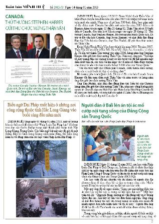 - Canada: Thủ thướng Stephen Harper gửi thư chúc mừng Thần Vận