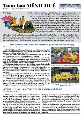 [MINH HUỆ 23-1-2013]Tuần báo Minh Huệ tổng hợp tin tức hàng tuần về cuộc đàn áp ở Trung Quốc và các sự kiện của học viên Pháp Luân Công trên khắp thế giới, với dạng thức là bản in màu định dạng PDF, gồm 4 trang. Bản PDF này định dạng khổ A4 tiện dụng cho việc in ấn phổ thông.