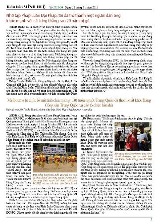 - Melbourne tổ chức lễ mít tinh chúc mừng 130 triệu người Trung Quốc đã thoái xuất khỏi Đảng Cộng sản Trung Quốc và các tổ chức liên đới