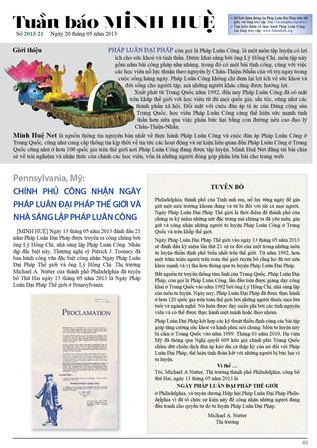 • Pennsylvania, Mỹ: chính phủ công nhận ngày Pháp Luân Đại Pháp thế giới và nhà sáng lập pháp luân công