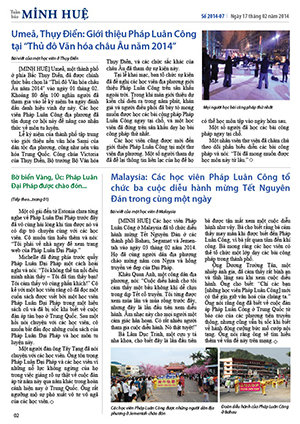 [MINH HUỆ 20-02-2014]Tuần báo Minh Huệ tổng hợp tin tức hàng tuần về cuộc đàn áp ở Trung Quốc và các sự kiện của học viên Pháp Luân Công trên khắp thế giới, với dạng thức là bản in màu định dạng PDF, gồm 4 trang. Bản PDF này định dạng khổ A4 tiện dụng cho việc in ấn phổ thông.