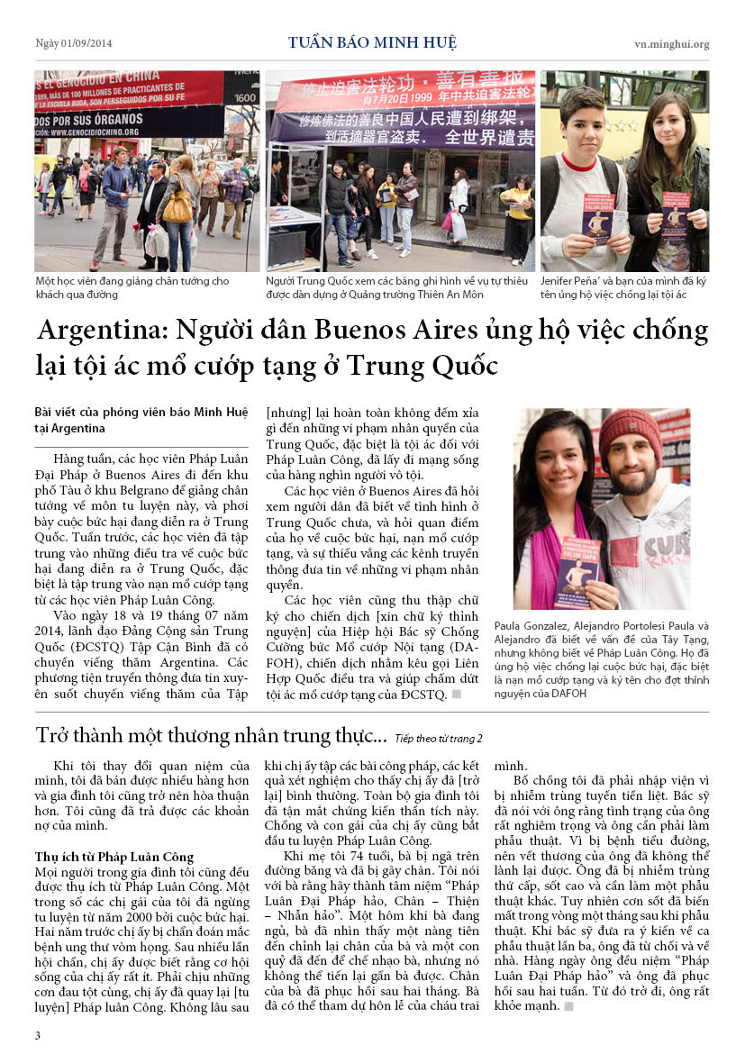 - Argentina: Người dân Buenos Aires ủng hộ việc chống lại tội ác mổ cướp tạng ở Trung Quốc