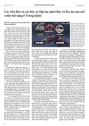- Các nhà báo và các bác sỹ tiếp tục phơi bày và lên án nạn mổ cướp nội tạng ở Trung Quốc