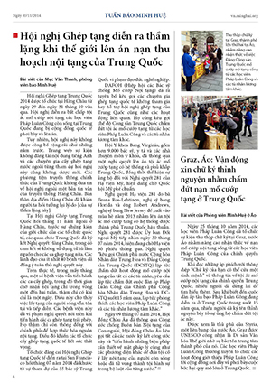 - Hội nghị Ghép tạng diễn ra thầm lặng khi thế giới lên án nạn thu hoạch nội tạng của Trung Quốc