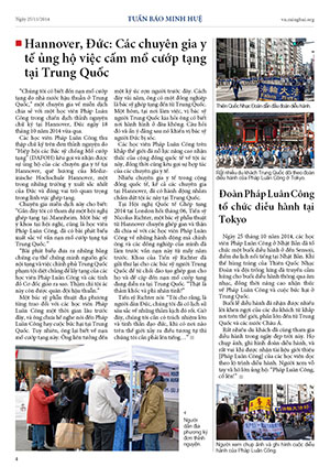 [MINH HUỆ 26-11-2014]Tuần báo Minh Huệ tổng hợp tin tức hàng tuần về cuộc đàn áp ở Trung Quốc và các sự kiện của học viên Pháp Luân Công trên khắp thế giới, với dạng thức là bản in màu định dạng PDF, gồm 4 trang. Bản PDF này định dạng khổ A4 tiện dụng cho việc in ấn phổ thông.