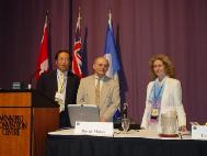 Đệ tử Pháp Luân Công Li Xun, Luật sư về nhân quyền nổi tiếng Mr. David Matas và Dr. Terri Marsh tham gia buổi thảo luận trong hội nghị