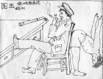 Phương pháp 5: “Áp sát vào bức tường”: Phương pháp này, những tên cai ngục cưỡng bức người đệ tử cúi cong xuống trong khi đó phải giữ hai chân thẳng. Sau đó, hai chân đứng sát vào nhau, hai tay giơ cao, càng cao càng tốt, với hai tay đụng vào tường. Sau đó, tên cai ngục ngồi lên ghế, đầy ghế sát vào người đệ tử, để thân họ áp sát vào tường.